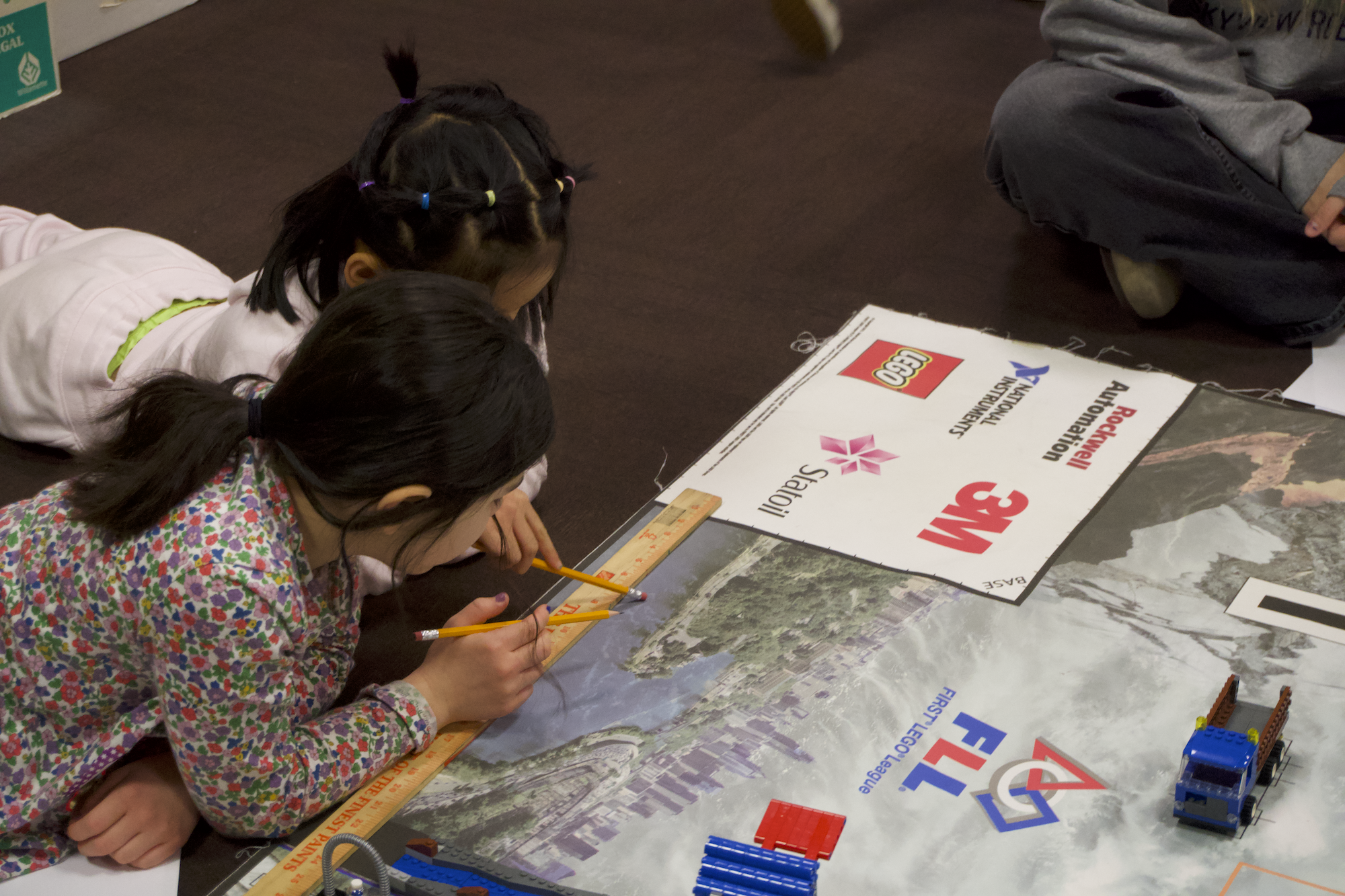 While our mentors presented about FLL, the impacts it had on them, and on their children, we grouped the kids into FLL teams. In these teams, the kids collaborated to find a solution when given a problem. From coming up with team names, to completing tasks by coding their LEGO robots, the kids experienced all that FLL has to offer.